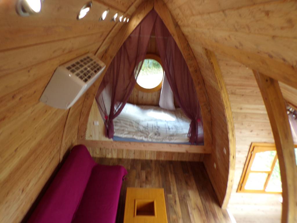 2 fois 2 couchages en mezzanine dont une fermée avec 1,38 m de hauteur. Le rez de chaussée avec ses 1,90 m de hauteur, vous donnent + de 22 m2 de plancher, sans oublier sa généreuse terrasse couverte et protégée sur deux côtés de presque 6 m2.